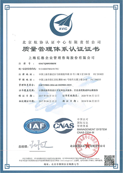 二、质量管理体系认证证书